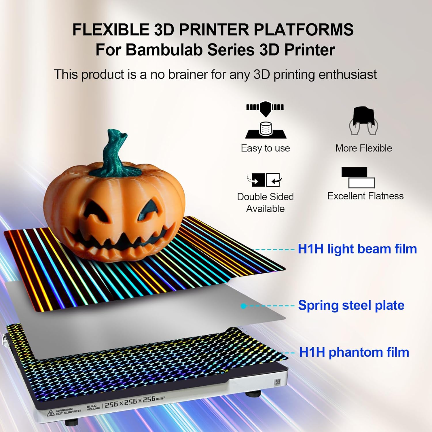 IdeaFormer Light Beam+Phantom H1H Spring Steel Build Plate, 257×257mm for Bambu Lab X1 X1C X1E P1P P1S A1