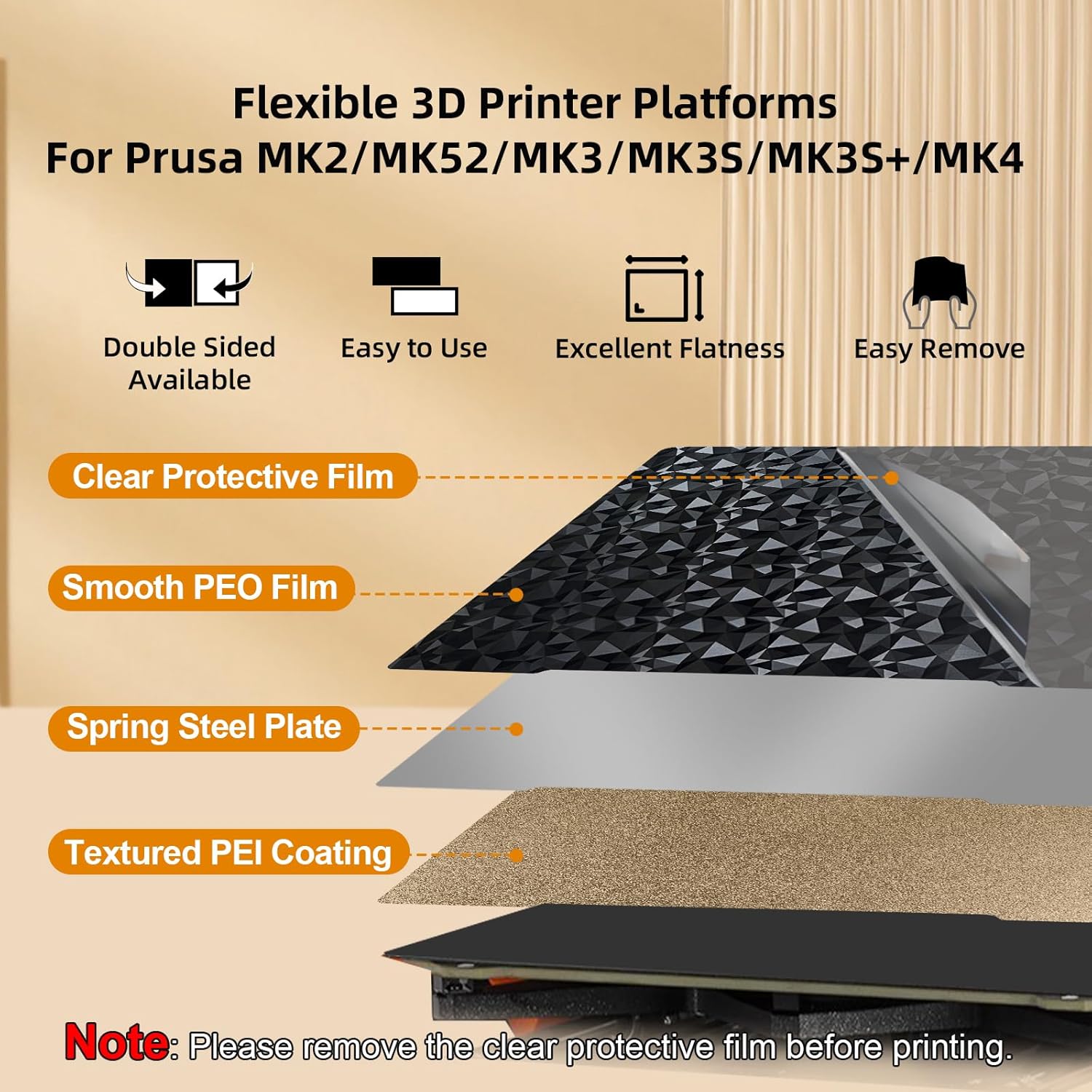 IdeaFormer Smooth Diamond PEO+Gold Textured PEI Spring Steel Build Plate,  241×253.8mm for Prusa I3 MK2 2.5S MK52 MK3S MK3S+ MK4 Core One