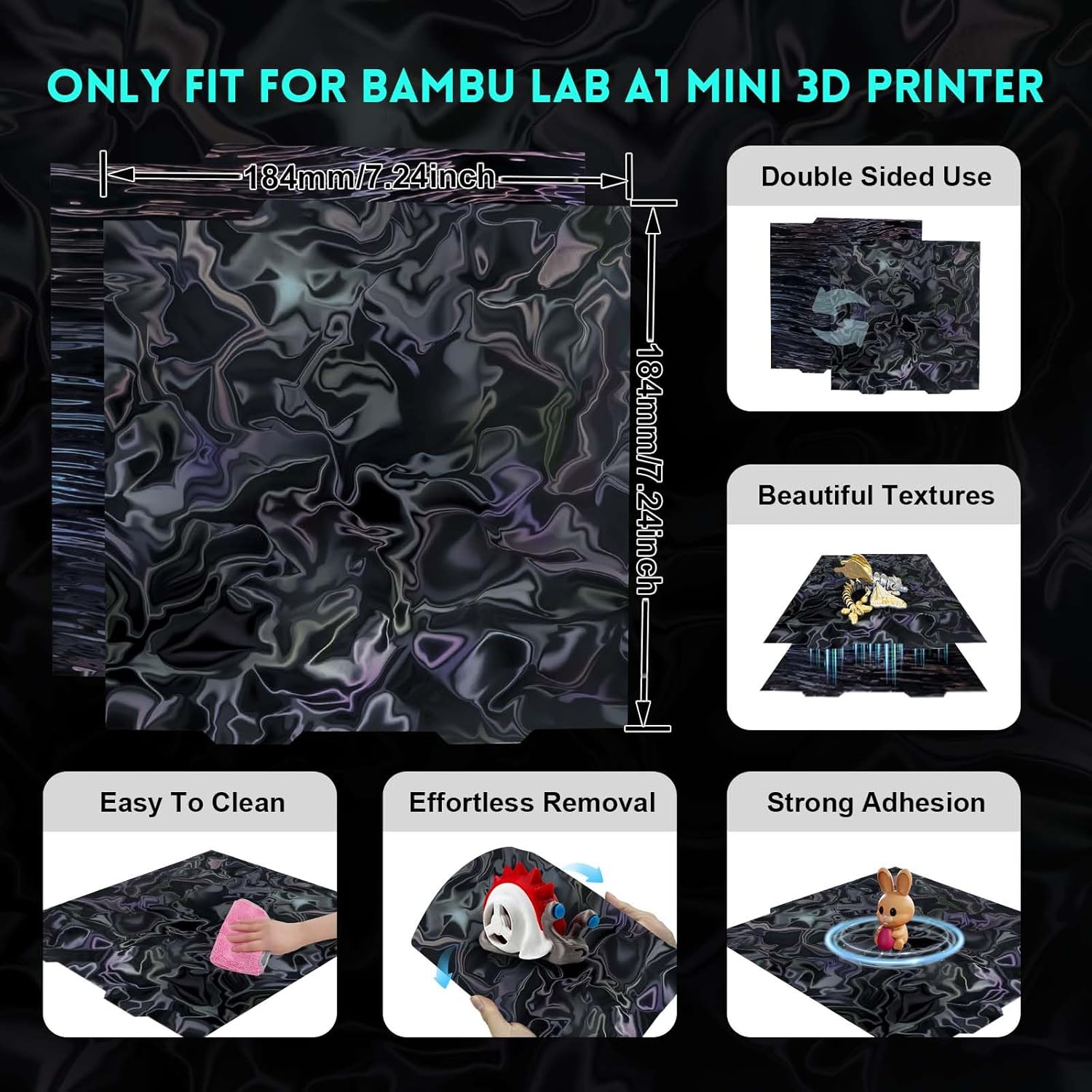 IdeaFormer Water Ripples+Wood Grain PER Spring Steel Build Plate, 184×184mm for Bambu Lab A1 MIni