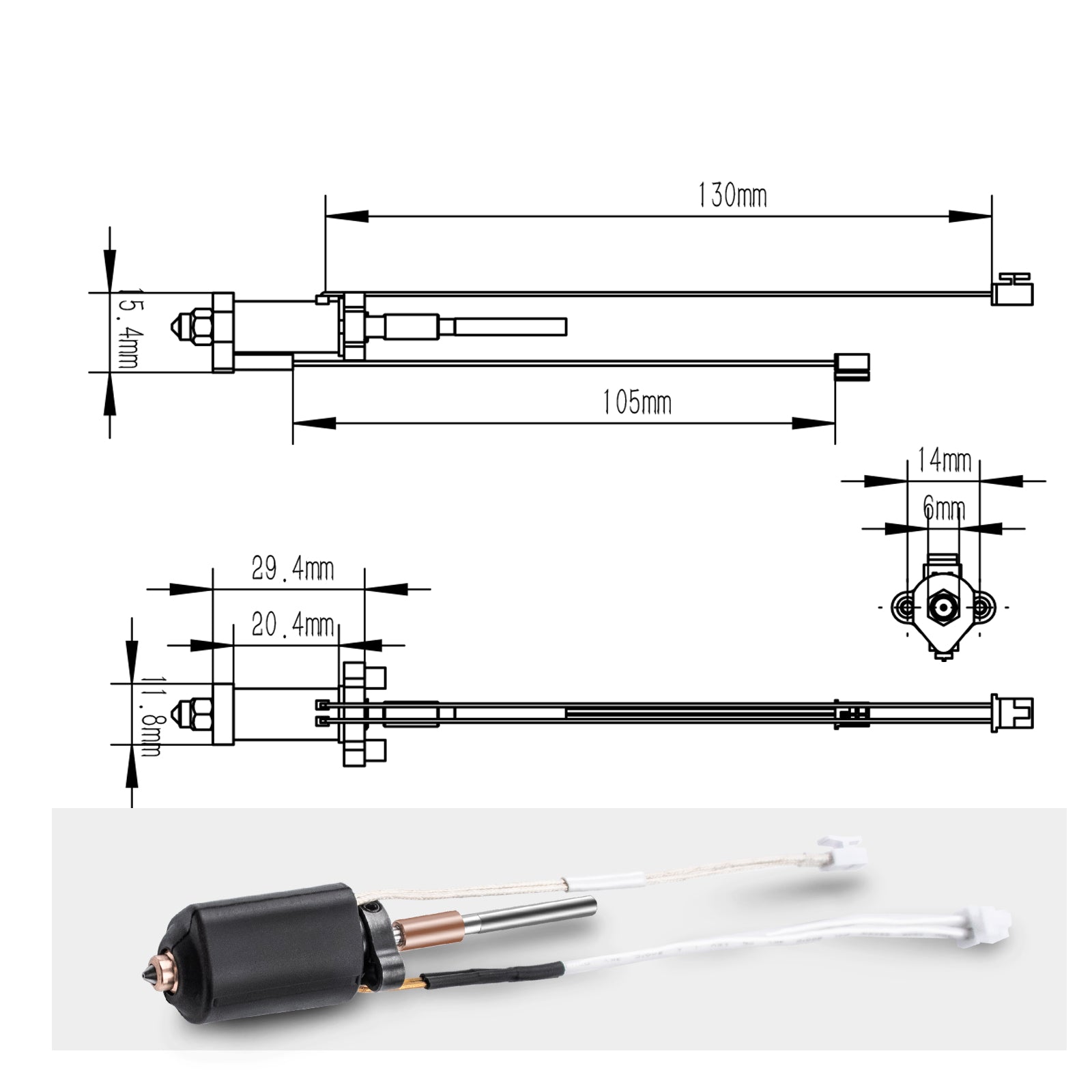 Upgrade Ceramic Hotend for Creality Hi/Hi Combo, Extruder Printer Head Kit with 0.4mm High Flow Bimetallic Nozzle, Heated Ceramic Ring, Titanium Alloy Throat for Creality Hi/Hi Combo 3D printer