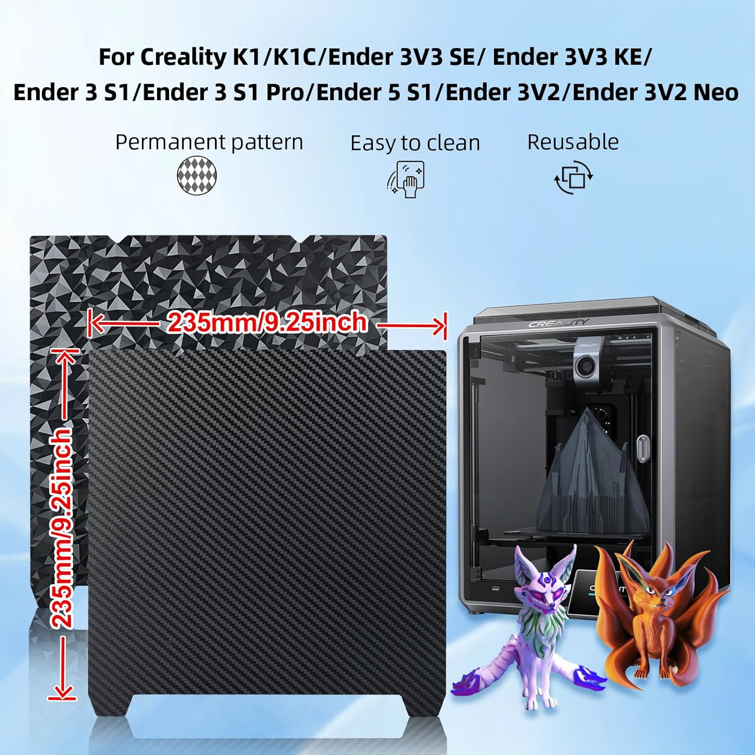 IdeaFormer Diamond PEO+Carbon Fiber PET Spring Steel Build Plate with Magnetic Plate, 235×235mm for Creality K1/K1 SE/K1C/Ender 3 S1/Ender 3 S1 Pro/Ender 5 S1/Ender 3 V3 SE/KE/Ender 3 V2/Neo