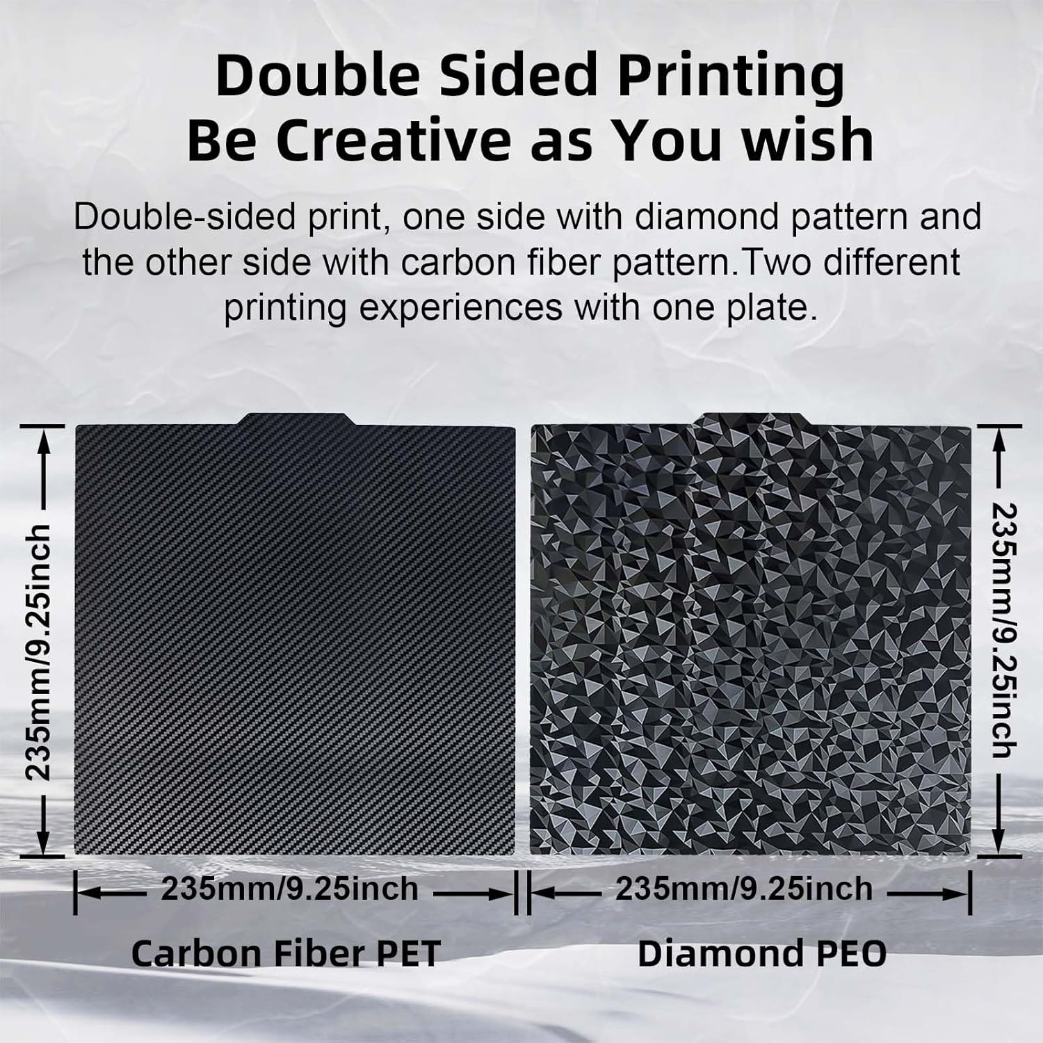 IdeaFormer Diamond PEO+Carbon Fiber PET Spring Steel Build Plate with Magnetic Plate, 235×235mm for Ender 3/Pro/Ender 3 V2/V2 Neo/Ender 5/for Elegoo Neptune 3/Neptune 4/Pro