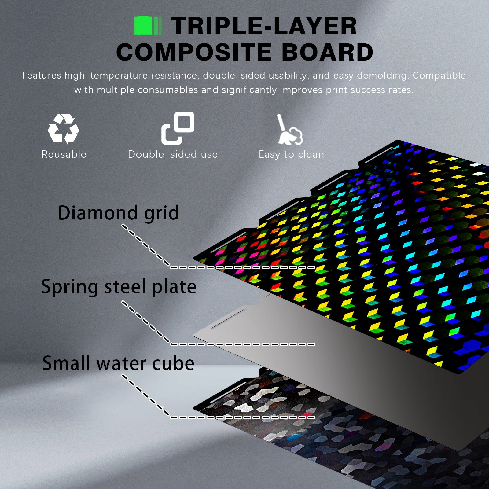 IdeaFormer Smooth Hew Glow + Water Cube PEG Spring Steel Build Plate, 276×293mm For Snapmaker U1