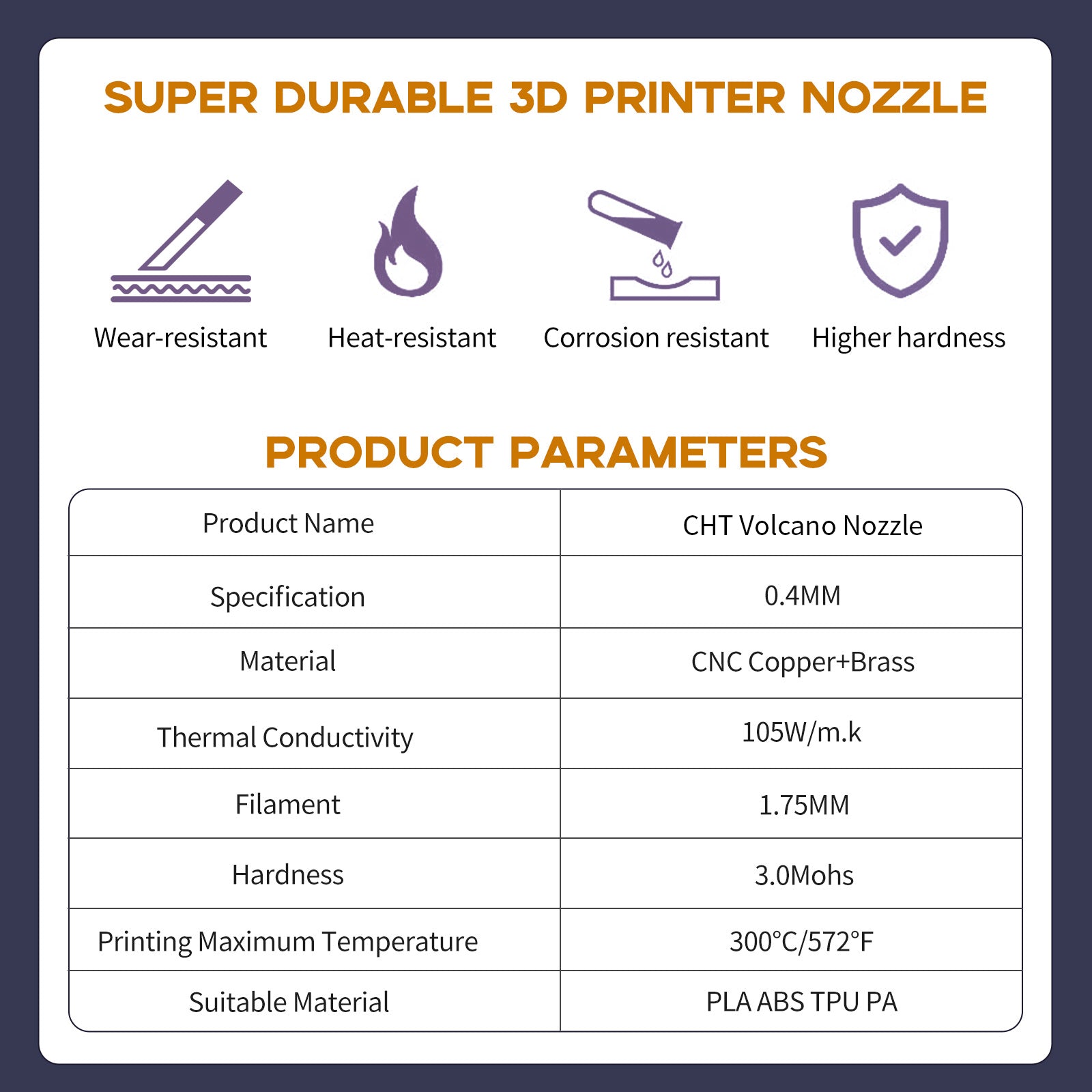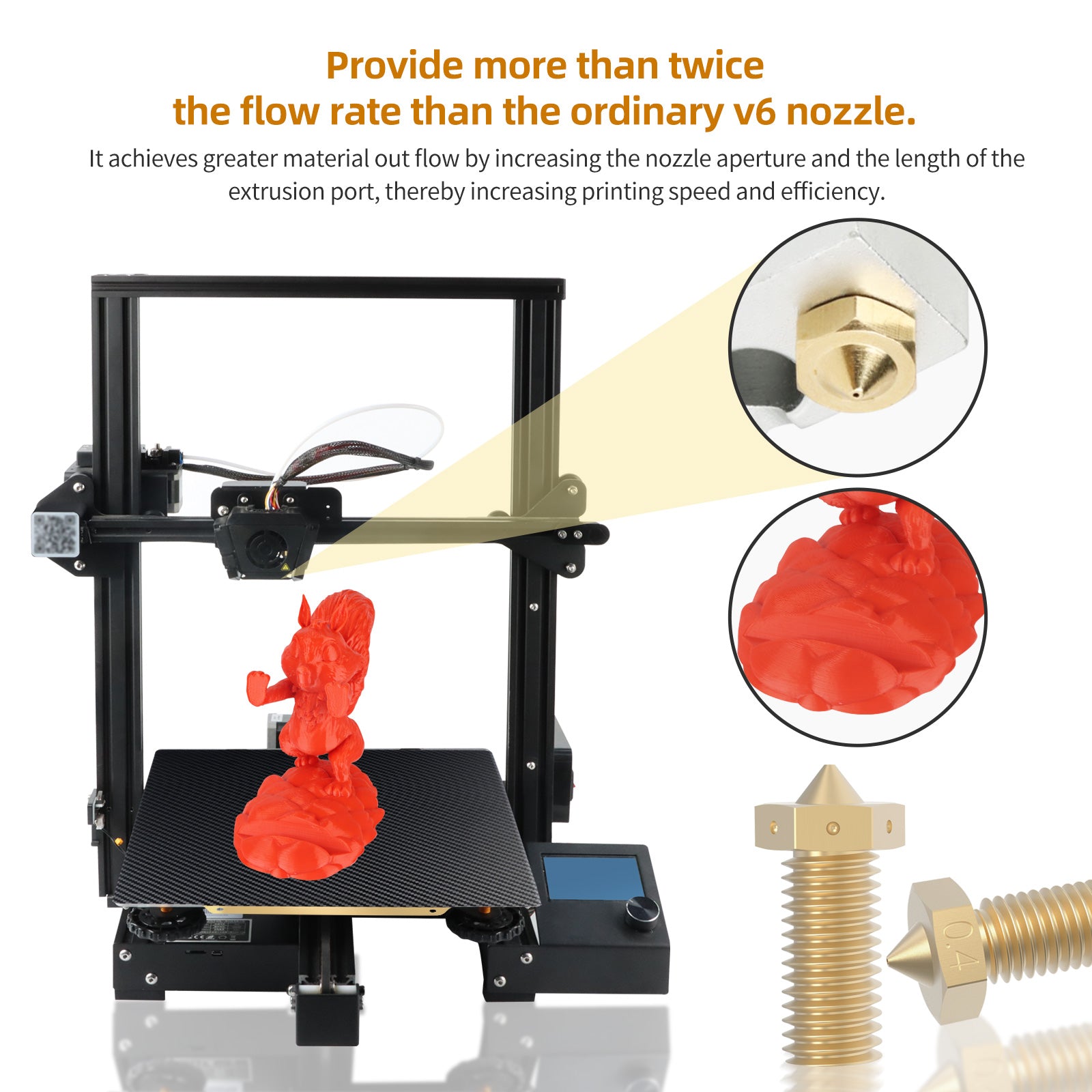 2pcs Clone CHT Volcano V6 0.4/0.6/0.8/1.0mm Brass Nozzles 3D Printer High Flow Print Head Nozzle for Anycubic Kobra Max, Vyper, and Artillery Sidewinder X1 X2 FDM 3D printers Support 1.75mm Filament