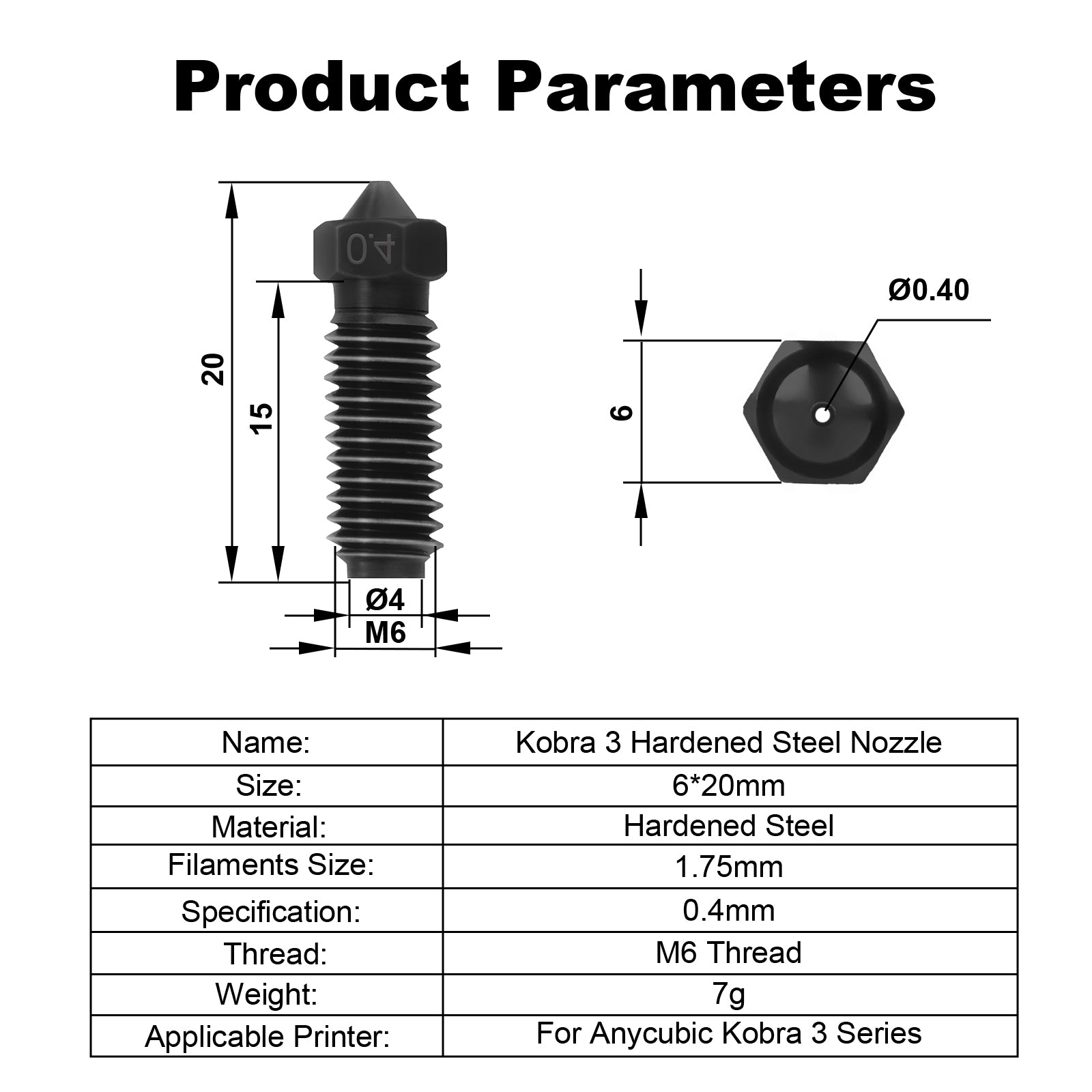 Size:0.4mm/0.6mm/0.8mm Nozzle