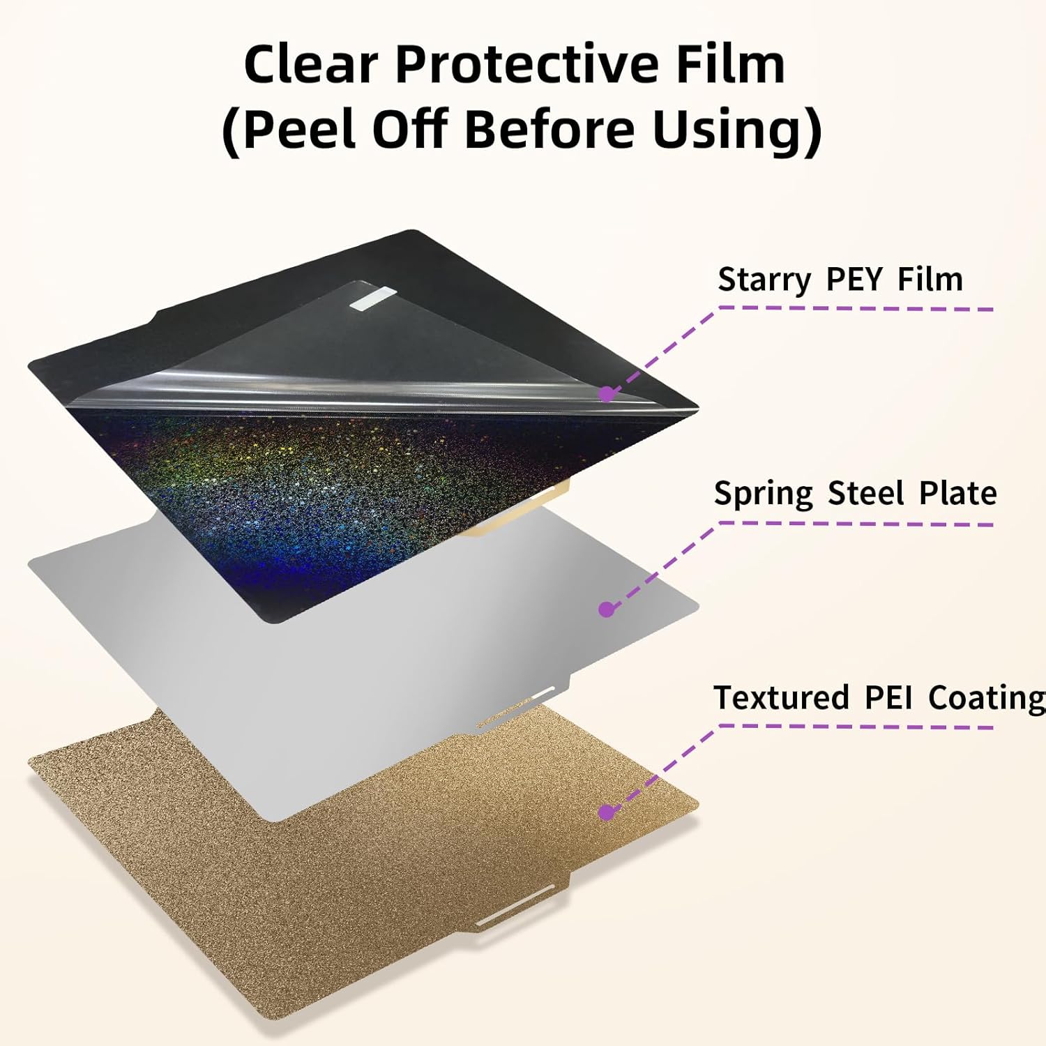 IdeaFormer Rainbow PEY+Textured Gold PEI Spring Steel Build Plate, 257×257mm for Bambu Lab X1 X1C X1E P1P P1S A1