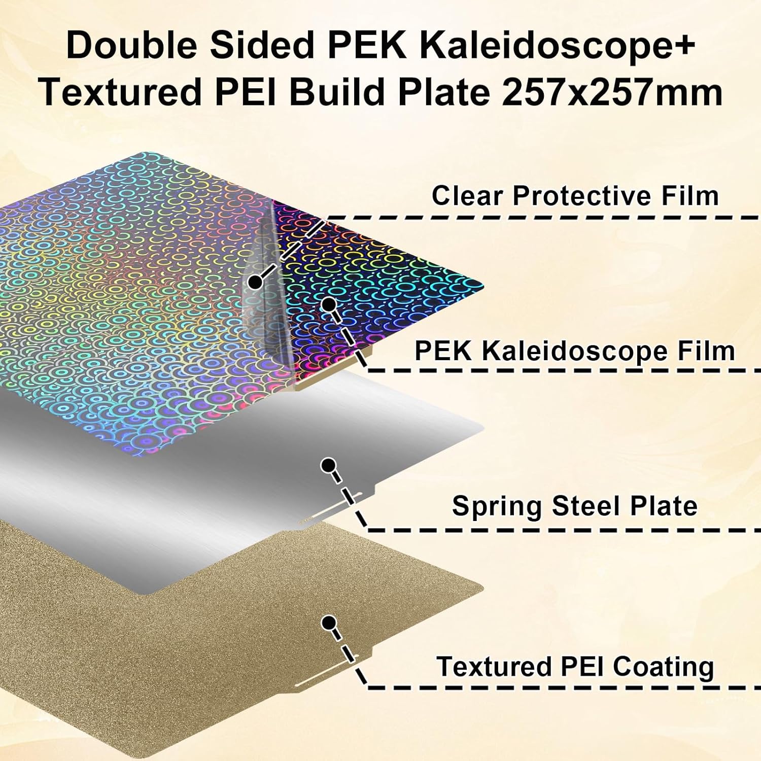 IdeaFormer Smooth Kaleidoscope PEK+Textured PEI Spring Steel Build Plate, 257×257mm for Bambu Lab X1 X1C X1E P1P P1S A1