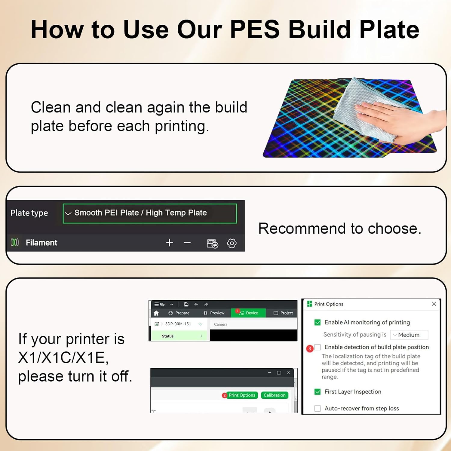 IdeaFormer Smooth Rainbow Mesh+Plaid PES Spring Steel Build Plate, 257×257mm for Bambu Lab X1 X1C X1E P1P P1S A1