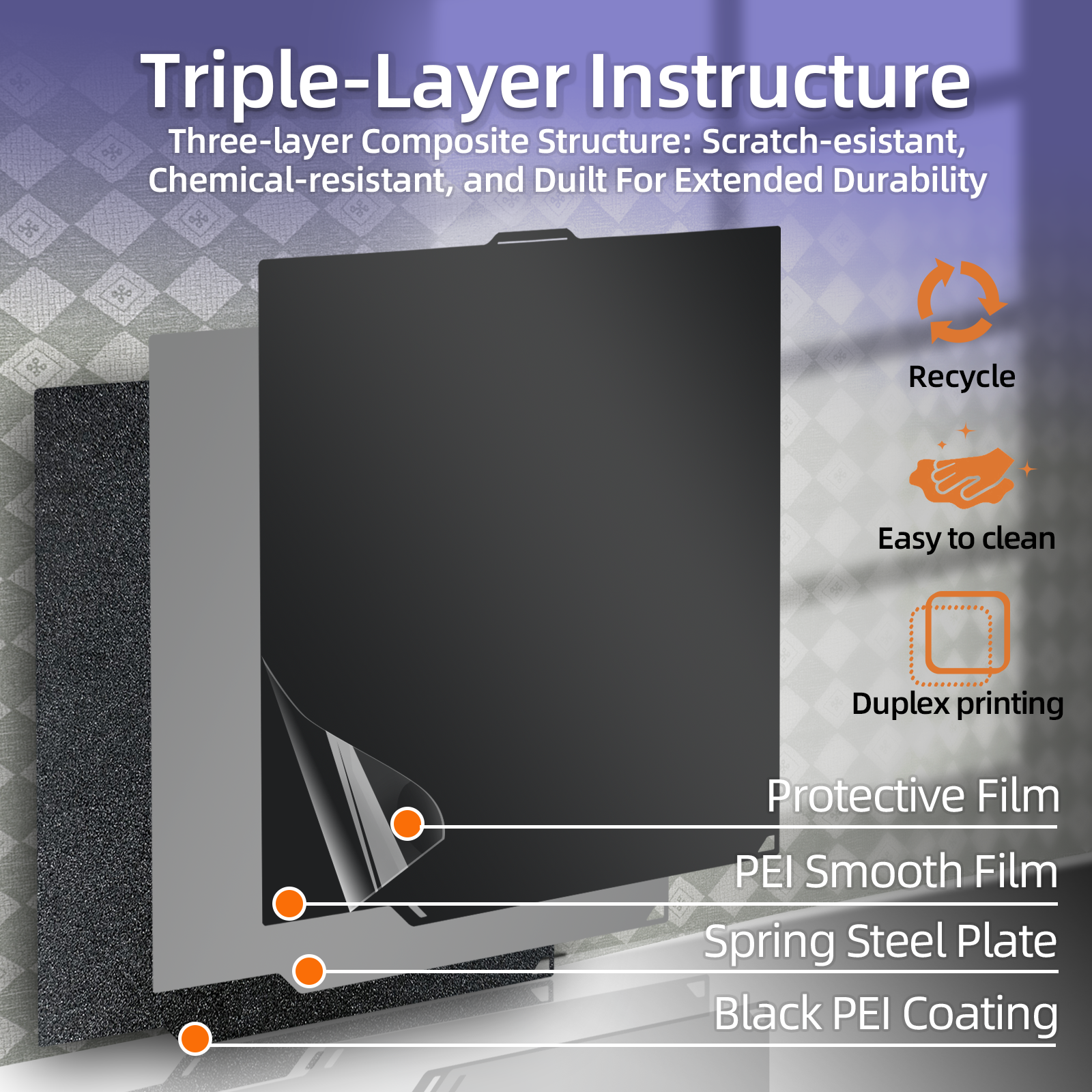 IdeaFormer 黑色光滑 PEI+纹理 PEI 弹簧钢打印平台,260×271mm,适用于 Elegoo Centauri Carbon